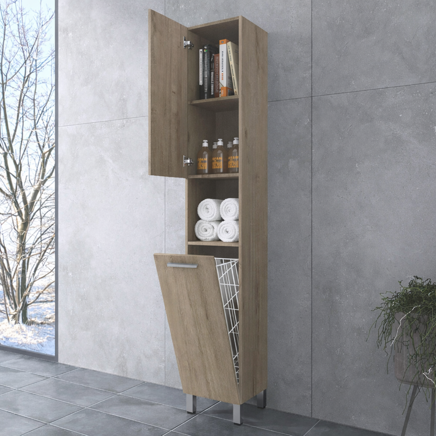 Ideális választás, ha rendezett, modern és jól kihasználható tárolóhelyet szeretnél a fürdőszobádban. A magas kialakítás és az átgondolt belső elrendezés elegendő helyet biztosít törölközők, tisztálkodási eszközök és szennyes ruhák tárolására.