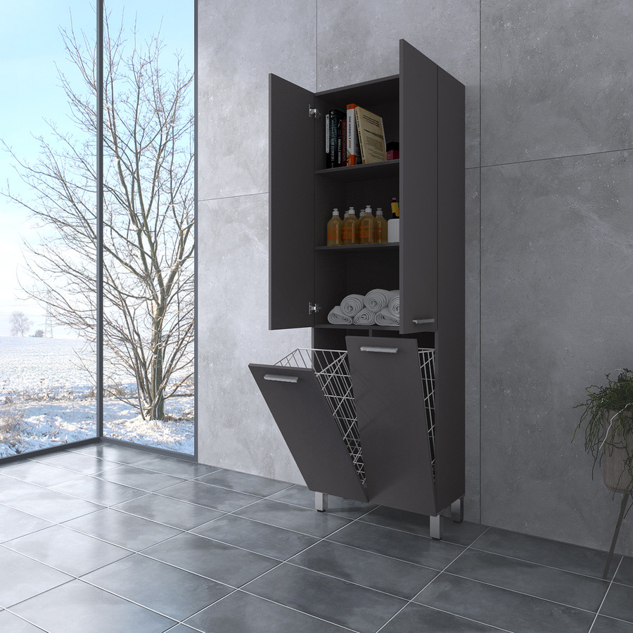 NORMANDIA 60 || Matt antracit szürke, fürdőszoba szekrény, szennyestartóval, tárolóval és polcokkal