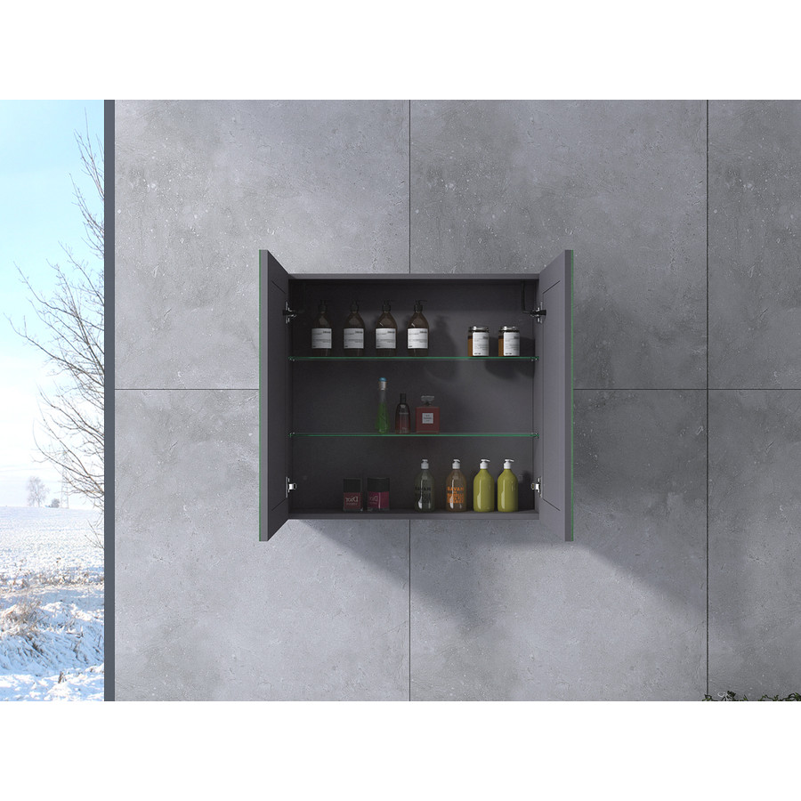 Sevilla || Matt antracit szürke, kétajtós, tükrös szekrény, LED világítással 60 cm