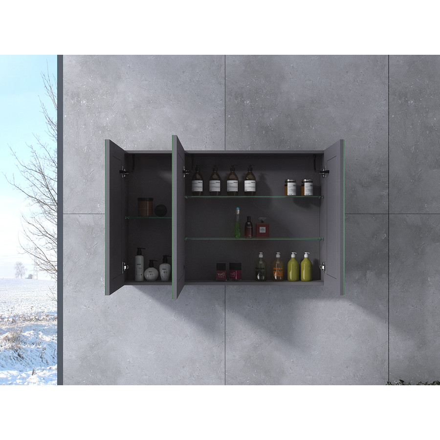 Vicenza || Matt antracit szürke, háromajtós, tükrös szekrény, LED világítással 100 cm