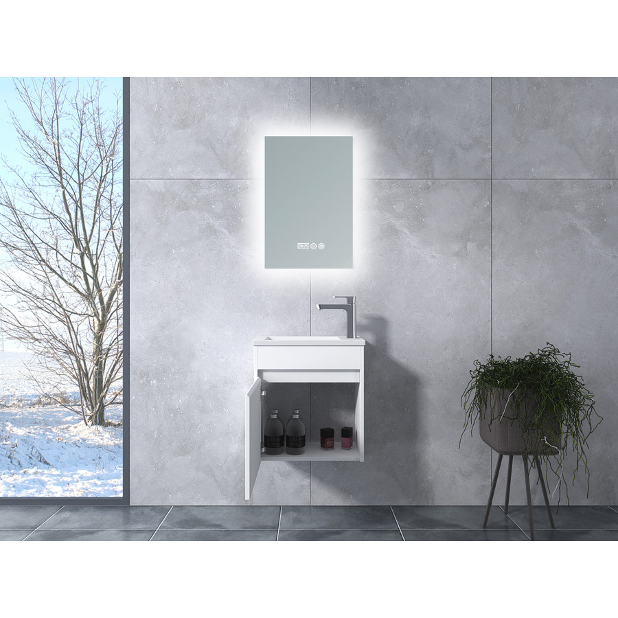 Zamora || White fürdőszoba szekrény mosdóval és LED-es tükörrel
