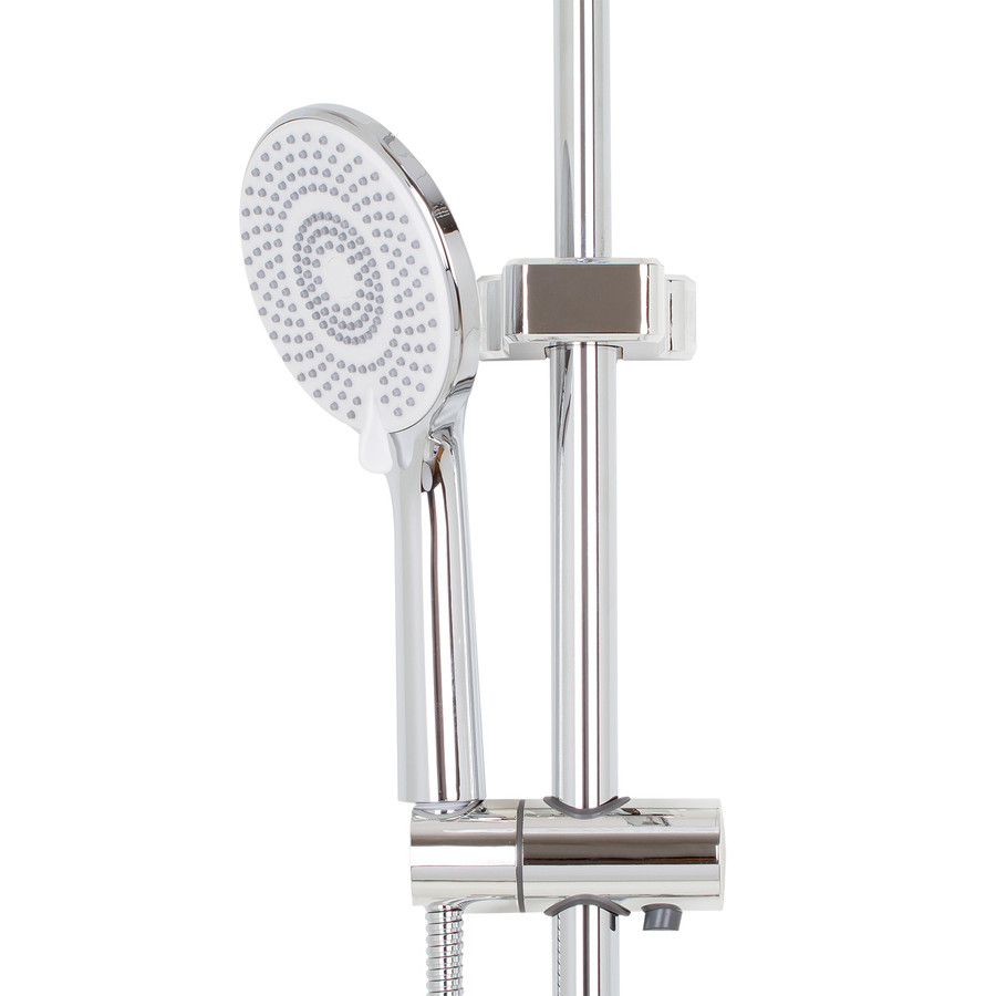 Ez a tusfürdőtartós zuhanyszett egyedülálló kialakításának köszönhetően egyszerre nyújt praktikumot és eleganciát a mindennapi használatban. A csaptelep kiszélesített teteje innovatív módon szolgál tusfürdőtartóként, így a tusfürdő vagy más fürdőszobai kiegészítő mindig kéznél van.