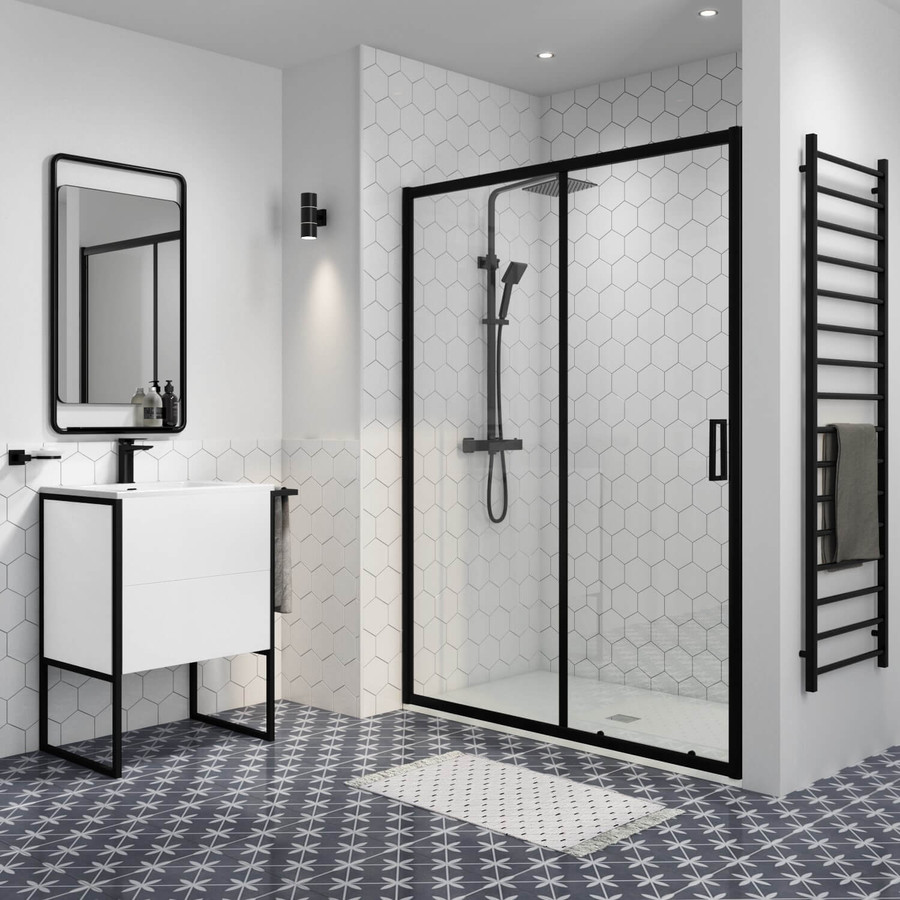 Elche || Black 120 toló zuhanyajtó, 190cm, 6mm, NANO