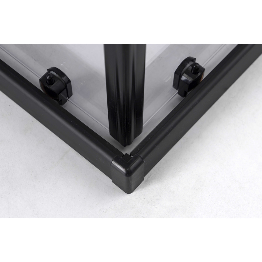 A klasszikus és egyben továbbfejlesztett formavilág egyesül ebben a keretes szerkezetű zuhanykabinban. A termék kialakítása során előtérbe került a praktikus és a könnyen tisztítható elemek használata. Zuhanykabinunk 6 mm vastag biztonsági üvegből készül. A kényelmes használatot és könnyed nyitást-zárást a 8 db dupla görgős rendszer teszi lehetővé. Ezek a görgők könnyen kipattinthatóak a keretből az esetleges szennyeződések eltávolításához. A tökéletes záródást szilikonos mágnes profilok biztosítják. A keret alumínium anyaga stabilitást és hosszú élettartamot ad a terméknek. Az esetleges fali egyenlőtlenségeket kiválóan el tudják tüntetni, mivel a fali profil mindkét oldalon állítható 1 cm-t.