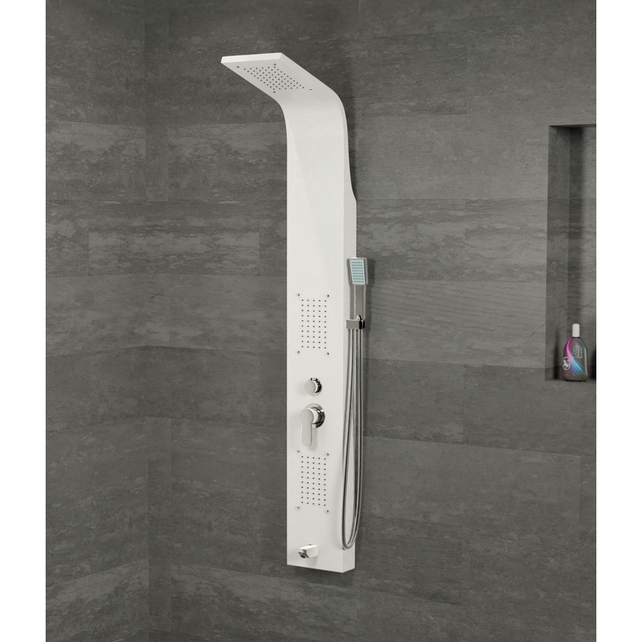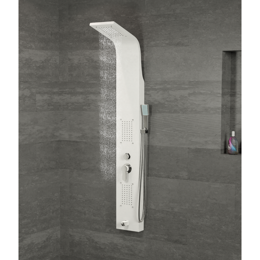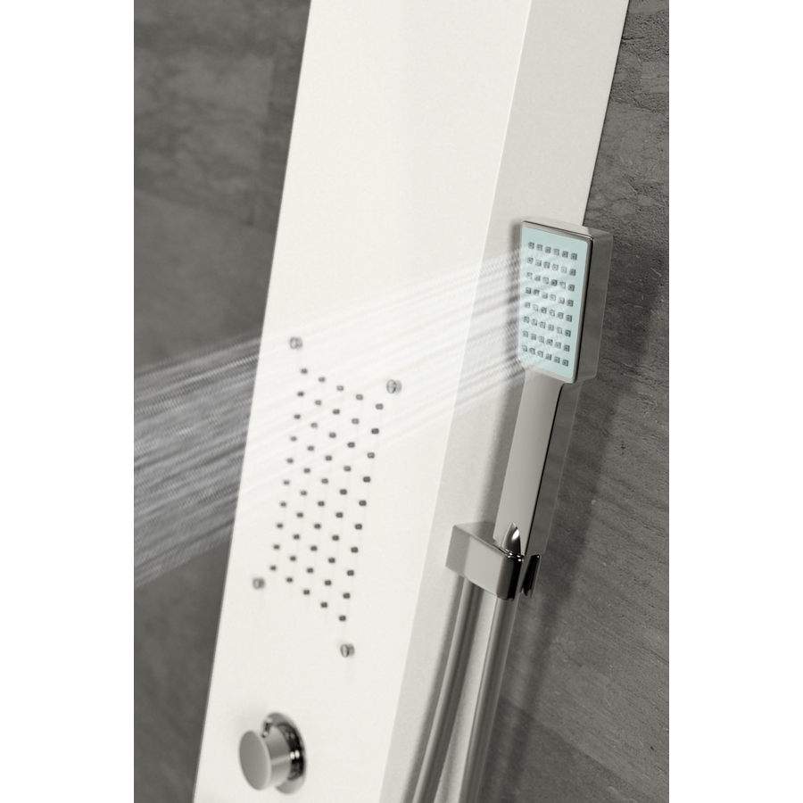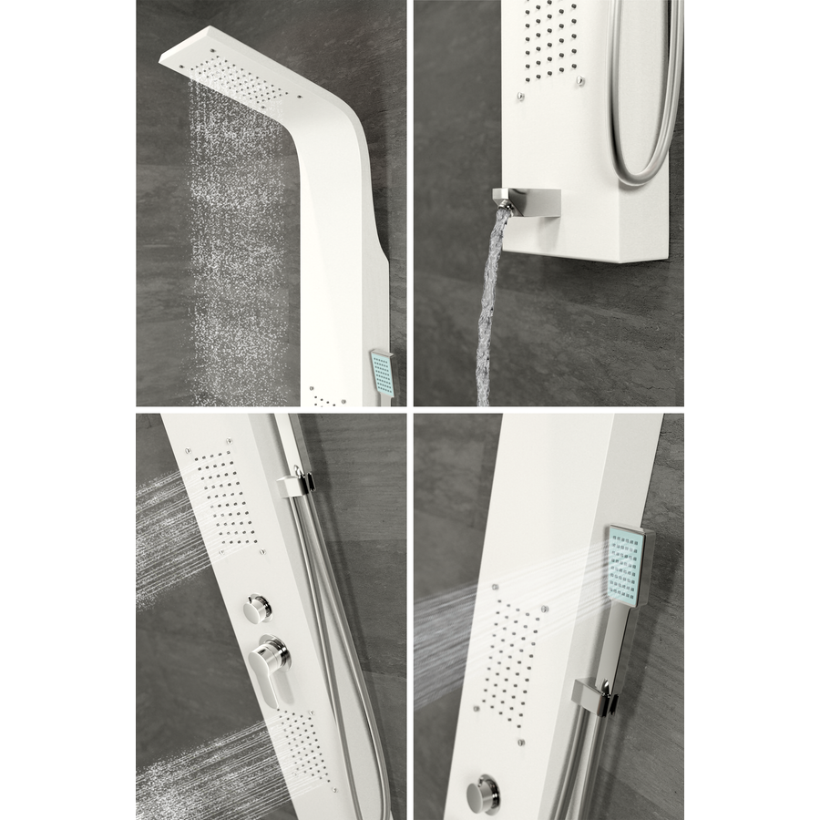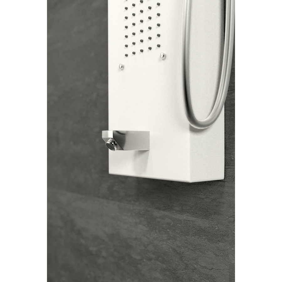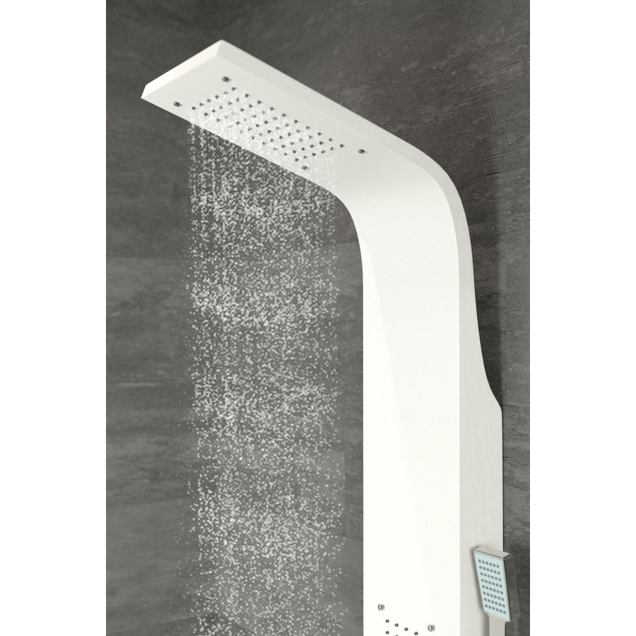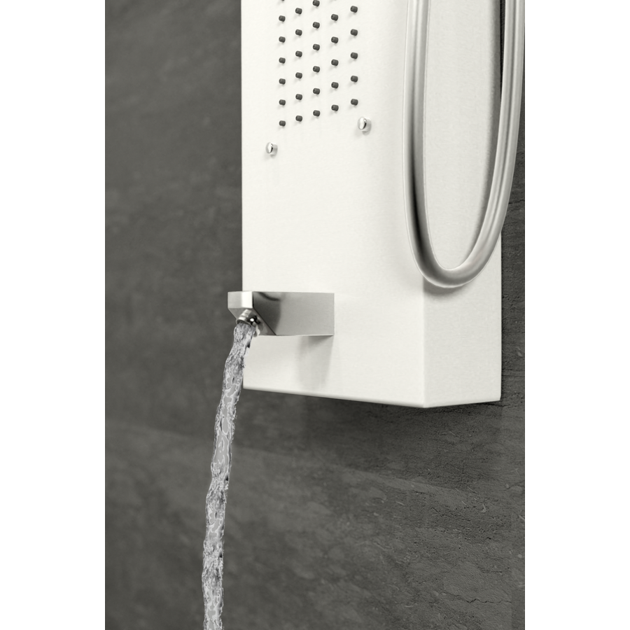 Zuhanypanelünk rozsdamentes acélból készült (304), mely hosszú élettartamot biztosít a panelnek. A víz intenzitása könnyedén szabályozható az egykaros mechanikus keverő csapteleppel, a váltószelep négy fajta zuhanyzási módot kínál, melyek egyszerűen beállíthatóak: zuhatag masszázs, 2 db integrált masszázsfúvóka, kádtöltő csaptelep, elegáns krómozott kézi zuhanyfej.